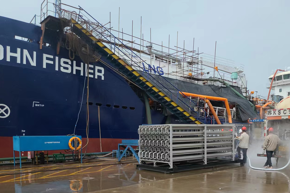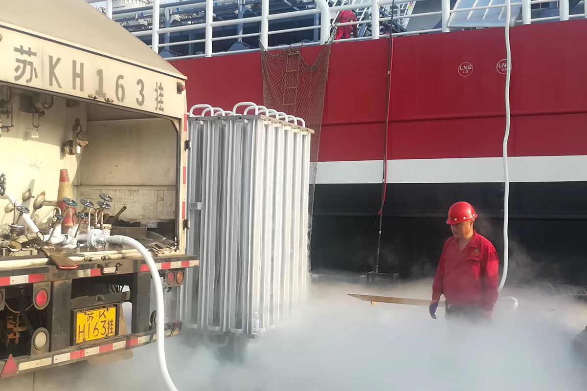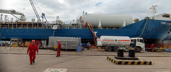 2,LNG雙燃料船的LNG 燃料艙預冷加注項目,提供氣體試驗及LNG燃料加注成套服務,包括(不限于)氣源(LNG&LN2)供應、現場氣試加注服務(技術服務、設備租賃、現場操作及回氣處理等服務)。